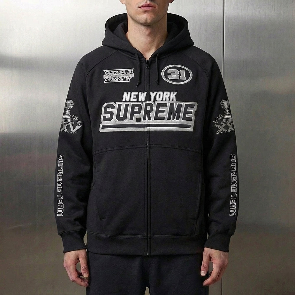 Supreme Football Zip Up Hooded Sweatshirt 'Black'