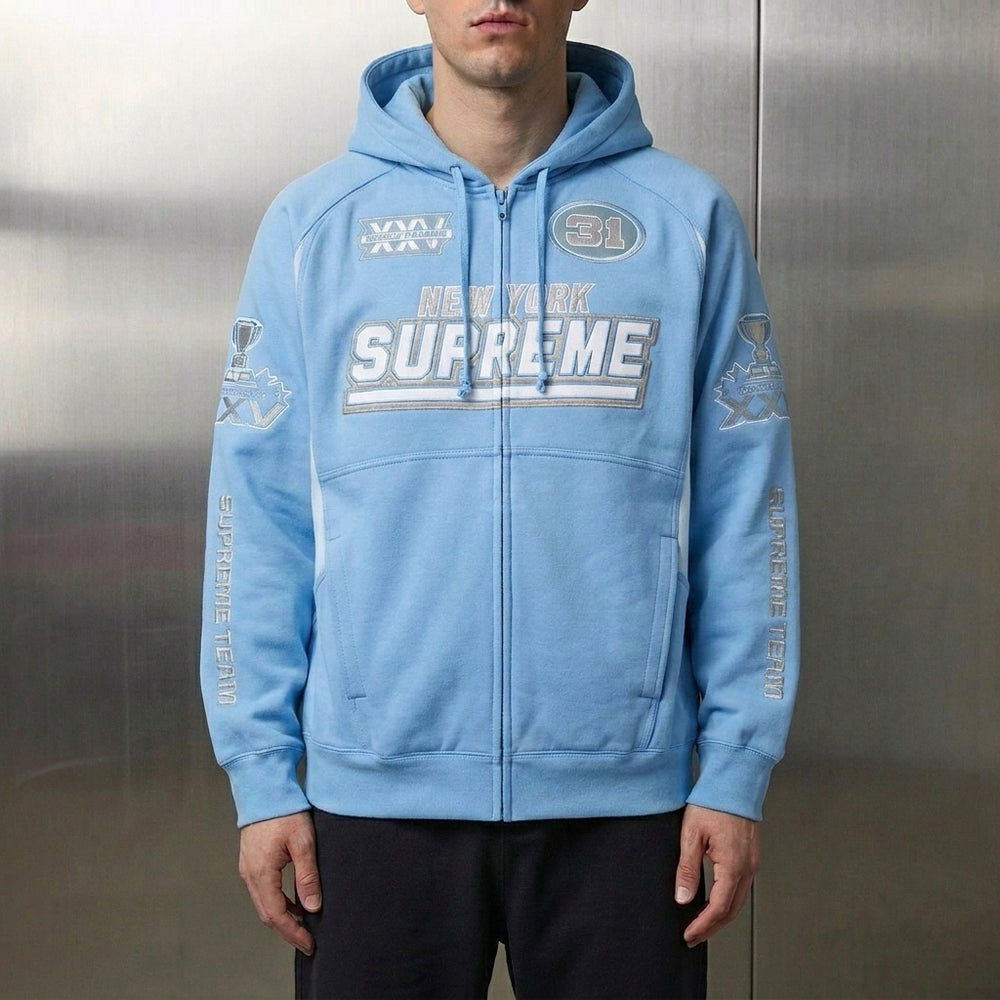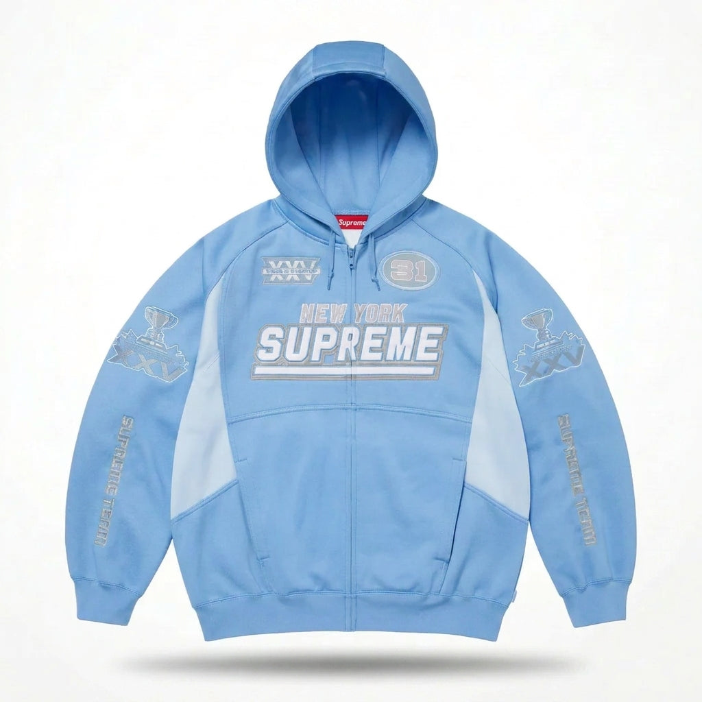 Supreme Football Zip Up Hooded Sweatshirt 'Light Blue'