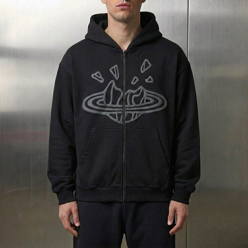 Broken Planet Zip-Up Hoodie 'Midnight Black'